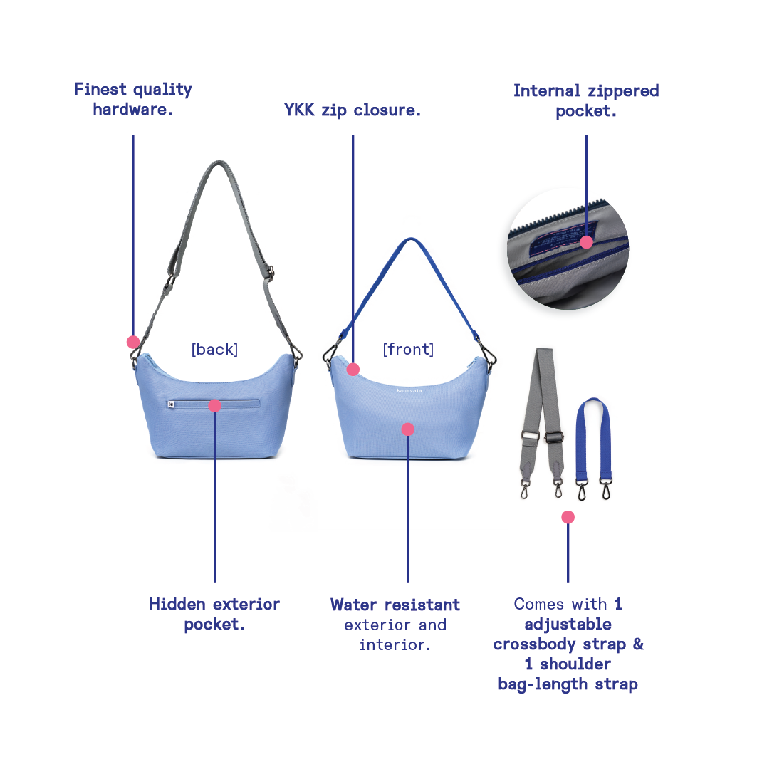 - Comes with 1 adjustable crossbody strap & 1 shoulder bag-length strap