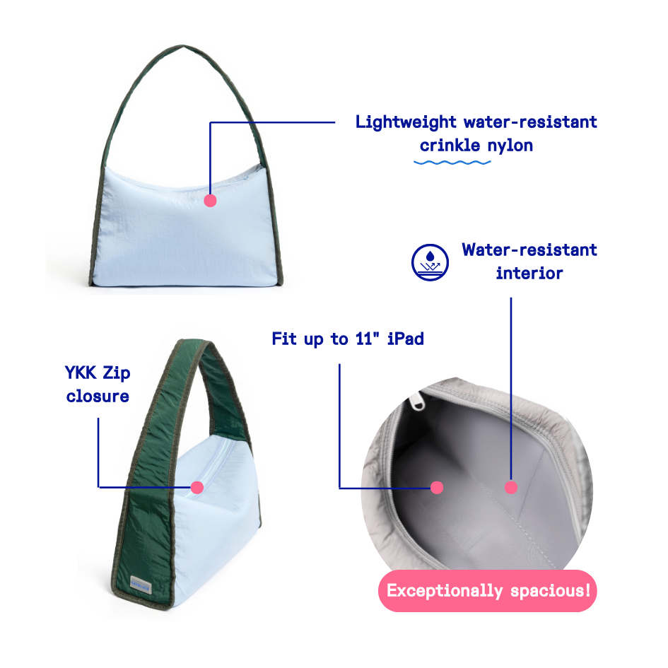 Kanavaia Crinkle Slouchy Shoulder Bag Baby Blue / Hunter Green