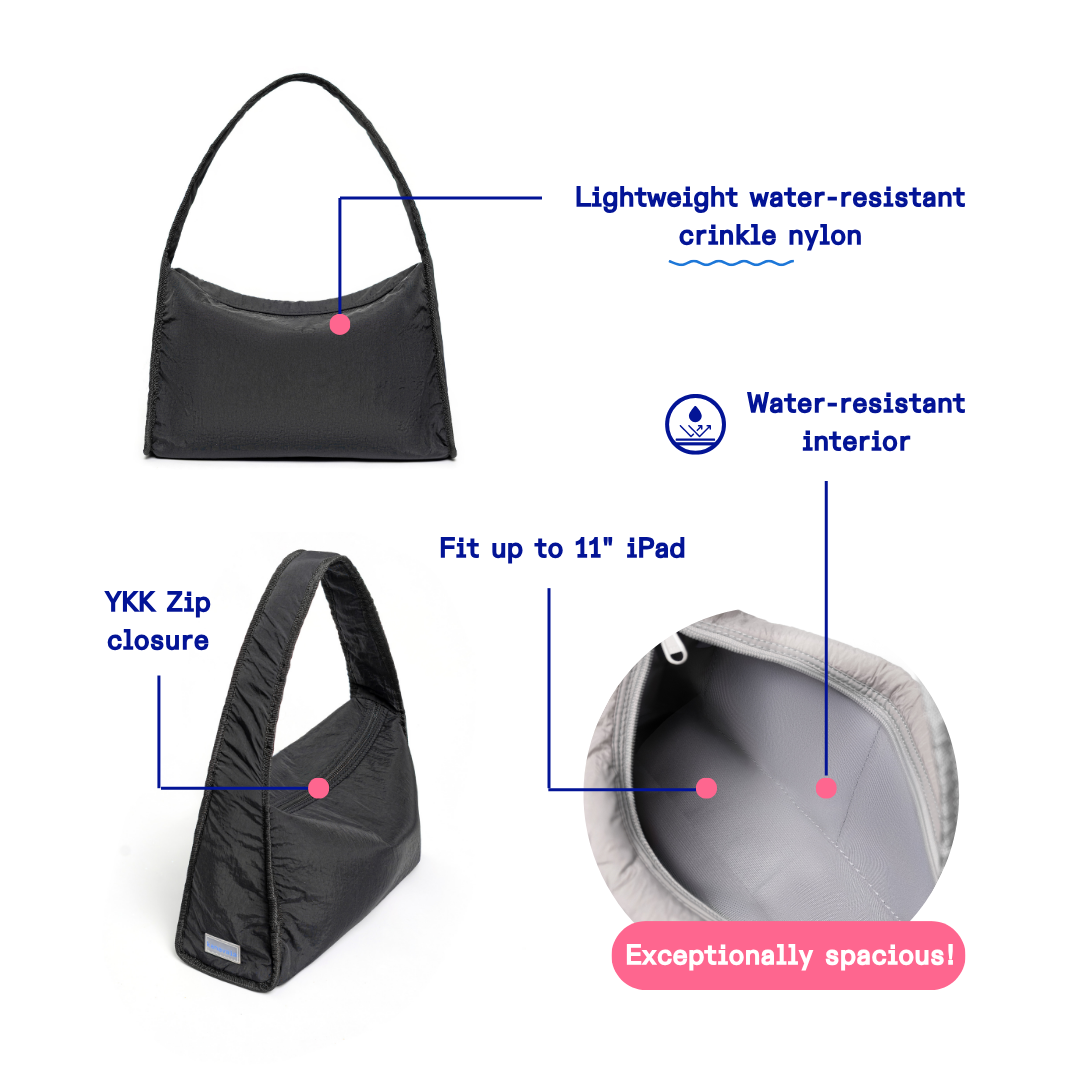 Kanavaia Crinkle Slouchy Shoulder Bag Black
