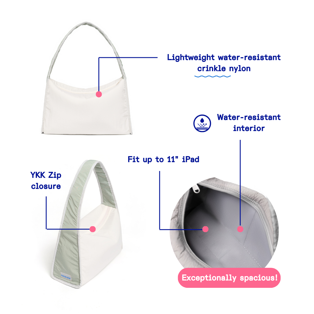 Kanavaia Crinkle Slouchy Shoulder Bag Oat / Sage Green