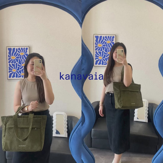 Kanavaia Double-Handle Corduroy Tote Bag Army Green