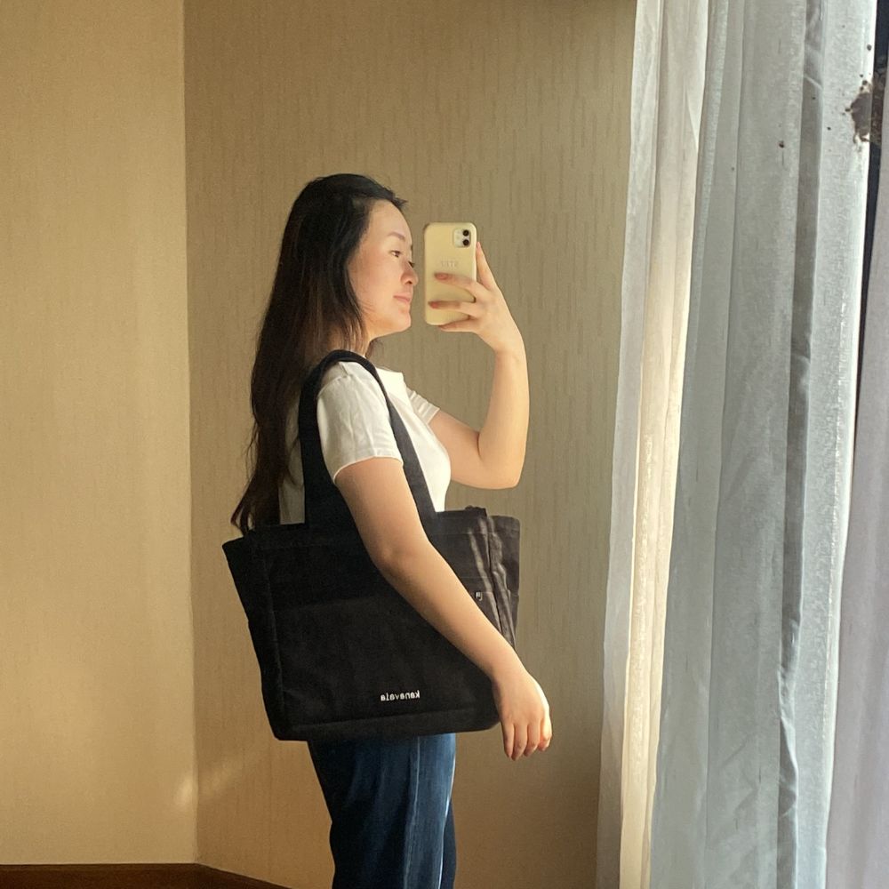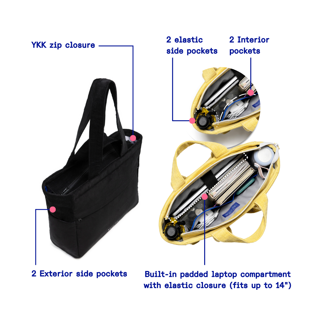 Kanavaia Double-Handle Corduroy Tote Bag Black